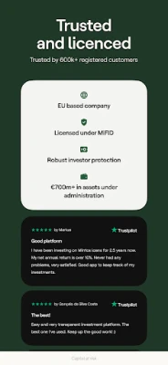 Ξεκινήστε το ταξίδι σας προς την οικονομική ενδυνάμωση με το Mintos, την πλατφόρμα που μεταμορφώνει τον τρόπο που διαχειρίζεστε τις επενδύσεις σας. Είτε κάνετε τα πρώτα σας βήματα στον κόσμο των επενδύσεων είτε επιδιώκετε να επεκτείνετε ένα ήδη υπάρχον χαρτοφυλάκιο, το Mintos προσφέρει μια μοναδική ευκαιρία για σταθερές αποδόσεις και μακροπρόθεσμη ανάπτυξη πλούτου. Ανακαλύψτε μια ευρεία γκάμα επενδυτικών επιλογών, όλες συγκεντρωμένες σε ένα σημείο, σχεδιασμένες για να ανταποκρίνονται στις δικές σας φιλοδοξίες. Ξεκινήστε με ένα μικρό ποσό, μόλις 50€, και βιώστε μια προσέγγιση επενδύσεων με πλήρη διαφάνεια στα κόστη και πληθώρα επιλογών χωρίς επιβαρύνσεις.