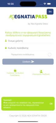 Η επίσημη εφαρμογή της ΝΕΑ ΕΓΝΑΤΙΑ ΟΔΟΣ ΠΑΡΑΧΩΡΗΣΗ Α.Ε. προσφέρει στους συνδρομητές Egnatia Pass τη δυνατότητα να διαχειρίζονται εύκολα τον λογαριασμό τους. Αποκτήστε πρόσβαση και παρακολουθήστε όλες τις λειτουργίες του myegnatiapass.gr απευθείας από το κινητό σας.