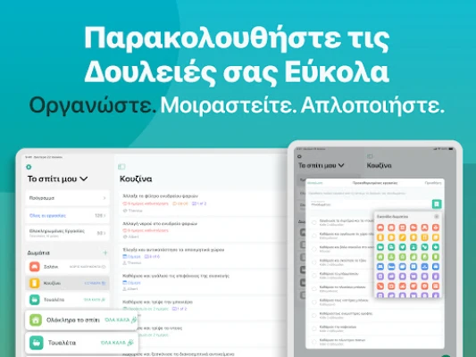 Οργανώστε αποτελεσματικά τις δουλειές του σπιτιού σας σε πραγματικό χρόνο με την Home Tasker. Χρησιμοποιήστε το Ημερολόγιο Οργάνωσης Καθαρισμού και έτοιμα πρότυπα για να προγραμματίσετε, να κατανείμετε εργασίες και να παρακολουθήσετε την πρόοδο. Κάντε τον καθαρισμό εύκολο και διασκεδαστικό.