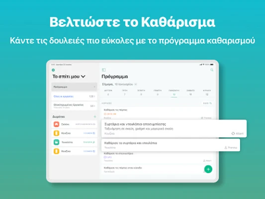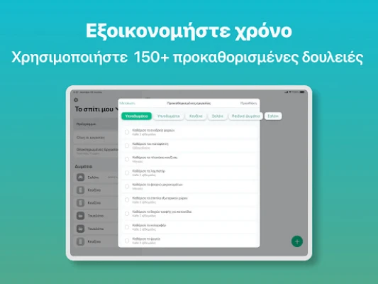 Σχεδιασμένο από την αρχή για να μετατρέψει την καθαριότητα σε μια απολαυστική εμπειρία, το Home Tasker προσφέρει βελτιωμένη παραγωγικότητα, μειωμένο άγχος χάρη σε ένα σαφές πρόγραμμα και αποτελεσματική διαχείριση του χρόνου. Ξεχάστε την αίσθηση του βάρους των υποχρεώσεων και ανακαλύψτε ξανά τη χαρά της οργάνωσης. Με το Home Tasker, η καθαριότητα γίνεται διασκεδαστική, και εσείς παραμένετε παρακινημένοι για ένα σπίτι που ακτινοβολεί, χωρίς κόπο.