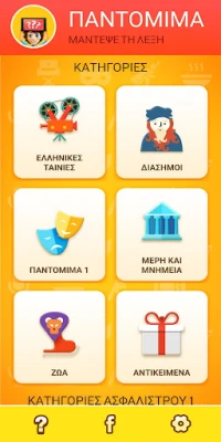 Το **Παντομίμα – Μάντεψε τη λέξη** φέρνει την ψυχαγωγία στα χέρια σας με μια πλούσια συλλογή από κατηγορίες. Απολαύστε εντελώς δωρεάν έξι συναρπαστικές θεματικές ενότητες, όπως "Ταινίες", "Διάσημοι", "Ζώα", "Αντικείμενα", "Παντομίμα 1" και "Μέρη & Μνημεία", οι οποίες θα σας χαρίσουν ατελείωτες ώρες παιχνιδιού. Για όσους αναζητούν ακόμα περισσότερη ποικιλία και αστείρευτη διασκέδαση, υπάρχουν διαθέσιμες premium κατηγορίες που περιλαμβάνουν "Ταινίες του Χόλυγουντ", "Φανταστικούς Χαρακτήρες", "Σούπερ Ήρωες", "Τηλεοπτικές Σειρές", "Παιδικές Ταινίες", "Τραγουδιστές", "Ντίσνεϊ", "Βιβλία", "Εμπορικά Ονόματα-Μάρκες", "Βιντεοπαιχνίδια", "Παντομίμα 2", "Ποδόσφαιρο", "Φύση" και "Επαγγέλματα", εξασφαλίζοντας ότι η διασκέδαση δεν τελειώνει ποτέ.